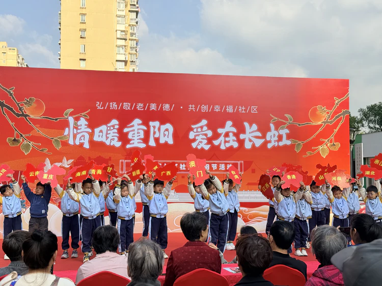重阳节前夕,孩子们在老师带领下走进长虹社区,为老人献上表演。甜美的歌声、真诚的笑容,将敬意与关心传递给长辈,也让尊老爱老的种子在幼儿心中扎根。