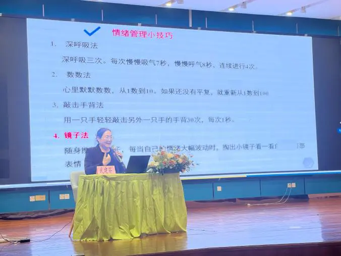 第二场讲座由武建芬教授为家长们分享以“做一个‘心平气和’人”为主题,就家长的情绪管理策略进行了深入浅出的阐述。