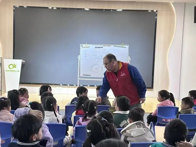 为进一步筑牢幼儿用电安全防线,普及安全用电知识,杭州市钱新幼儿园开展了2025年度11.9全国消防宣传月“全民消防·生命至上-安全用火用电”为主题的系列活动,在家长志愿者的积极联络与邀请下,全国劳动模范、中国好人、全国最美志愿者、全国“优质服务标兵”、国网杭州供电公司红船阿斌电力志愿服务总队队长史文斌师傅以及电力工作者走进校园,为孩子们带来了一场生动有趣的用电安全小课堂,让孩子们收获满满安全“干货”。
