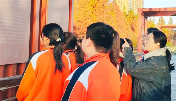 深秋的泗水县民法典公园,褪去了盛夏的喧嚣,多了几分静谧与厚重。金黄的银杏叶铺满步道,火红的枫叶点缀林间,淙淙流水绕过青石,在阳光下泛着粼粼波光。宪法日宣传雕塑在秋叶映衬下更显庄严,“公民小明的法治人生”宣传长廊静静矗立。我和徐老师带着六年级的孩子们,走进这座兼具自然之美与法治内涵的公园,开启了一场别开生面的法治教育实践活动。