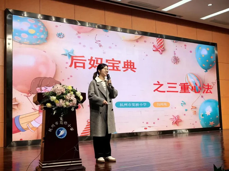 最后,上城区二星级班主任包纯纯老师以《后妈宝典之三重心法》为主题,结合自身多年班主任工作经验展开分享。包老师通过班级管理中的真实案例,生动讲解如何化解师生矛盾、构建和谐班级氛围、联动家校力量,引发了在场教师的强烈共鸣与热烈讨论。