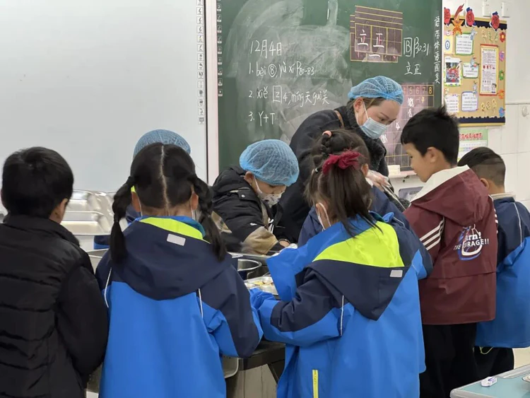 中午时分,二十四位家长走进孩子所在的班级。他们与班主任一同参与分餐,并坐在孩子们身边共进午餐。家长们细细品味餐食的口味与营养搭配,观察孩子们的用餐习惯与就餐秩序,亲身感受午餐的温度与氛围。席间,家长与孩子、老师轻声交流,笑语盈盈,教室里洋溢着温馨融洽的气息。