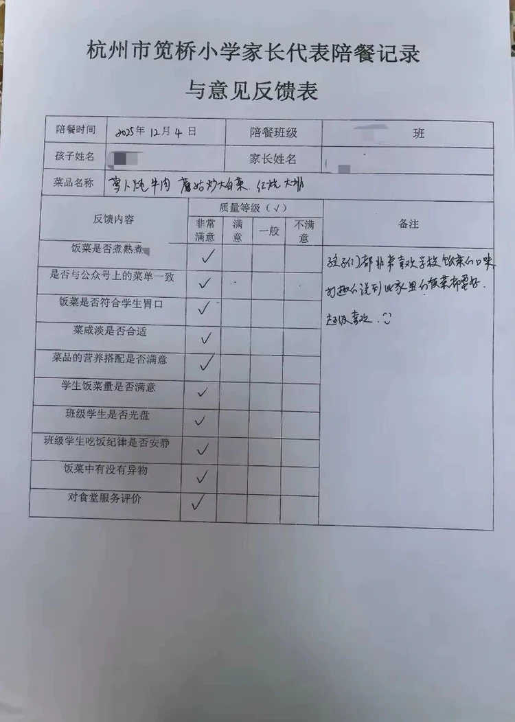 为增进家长对学校食堂工作的了解,提升学校食堂管理的透明度与规范化水平,杭州市笕桥小学于2025年12月4日成功举办食堂家长开放日活动。活动旨在让家长通过亲身参与,直观感受食堂从原料验收到餐食供应的全流程,共同守护学生“舌尖上的安全”,构建家校之间在食品安全领域的信任桥梁。
