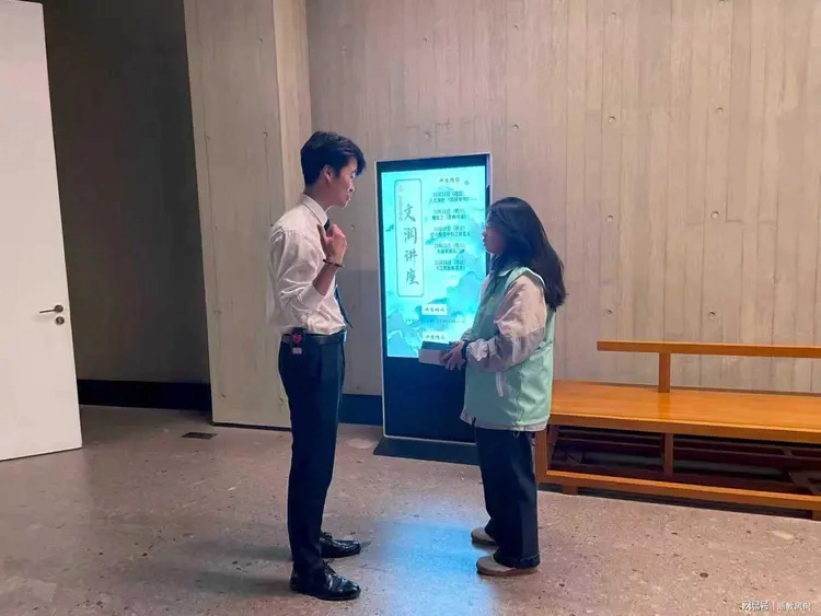 杭州国家版本馆作为承载中华版本文化的重要地标,是传承和展示国家版本资源的关键阵地。此次志愿服务中,“志愿者们提前接受专业培训,根据场馆实际需求分赴多个岗位开展工作:在场馆的清水混凝土廊道区域,志愿者们为前来参观的家庭游客、团体游客讲解场馆的建筑设计理念与版本文化背景,引导游客有序参观,让观众更直观地感受良渚版本文化的独特魅力;在场馆入口处,志愿者们协助工作人员进行客流引导,为到访游客提供路线咨询、场馆须知讲解等服务,用耐心细致的态度为游客开启舒心的参观之旅;在贴满便签的文化展示板前,志愿者们跟随场馆工作人员学习展示板上的版本文化信息,为后续向游客讲解做好充分准备;在“文润讲座”电子屏展区,志愿者们不仅负责引导观众了解讲座排期与预约方式,还值守在展区旁的休息区周边,为有需要的游客提供便民咨询,保障展区秩序井然;此外,志愿者们还分布在场馆的步道、绿植景观区等公共区域,协助维护场馆环境,及时解答游客的各类疑问。