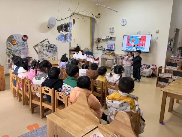针对托小班幼儿的认知特点,老师们通过生动形象的交通安全视频、色彩鲜明的知识图片,将“红灯停、绿灯行”“过马路要走斑马线”等基础规则转化为直观易懂的画面。孩子们睁着好奇的大眼睛认真观看,在轻松的氛围中初步了解了交通信号灯、常见交通标志的含义,悄悄在心中种下了安全的种子。