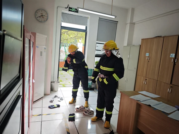 比赛哨声一响,保安师傅立刻切换“冲刺模式”,两人配合得严丝合缝。他们手疾眼快展开消防服,麻利套上消防靴系紧鞋带,扣好头盔系带、戴好消防手套,再迅速拉上拉链、粘牢雌雄贴,最后合力扎紧安全带。整套动作快而不乱、连贯流畅,短短几分钟就完成全套穿戴,稳稳筑牢应急处置“防护第一道关”,尽显飒爽风采!