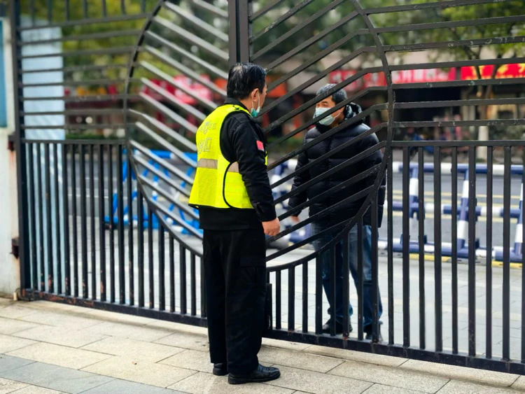 上午10:30,园门口上演“无脚本”模拟场景:一名戴口罩的“可疑人员”假借“助教”身份试图入园,在保安核实信息时突然强行闯卡。值守保安立即警觉,启动一键报警系统并上报,持械上前构筑第一道安全防线。