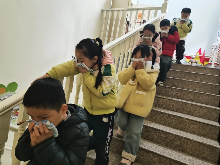 同时,幼儿园精心组织实景模拟活动。在防拐骗模拟场景中,老师们化身 “陌生人”,用零食、玩具等道具引诱孩子,以此检验孩子们的安全防范意识。演练结束后,老师及时进行总结引导,帮助幼儿牢记“不接受陌生人礼物”“遇到危险找大人”的安全准则。消防安全演练也同步开展,孩子们在老师的带领下,学习正确的逃生姿势,模拟火灾疏散,切实提升应急避险能力。