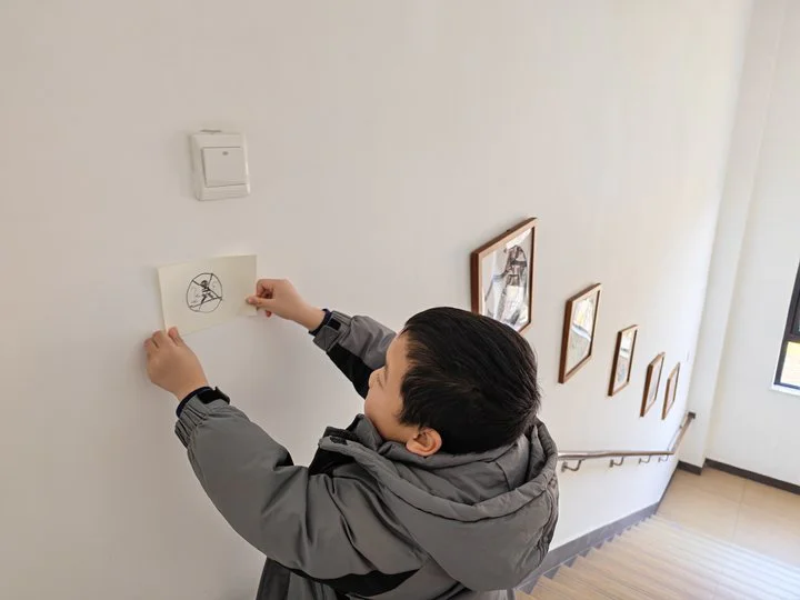 大班幼儿以“温暖守护战”为契机,主动担当起幼儿园小主人的责任。他们以小组为单位,用柔软的毛线为大树裹上温暖的“毛衣”,还绘制了“防滑”警示标志,张贴在幼儿园楼梯口、走廊等易滑倒区域,用自己的小手为班级、园所打造安全、温暖的成长环境,也进一步增强集体责任感。