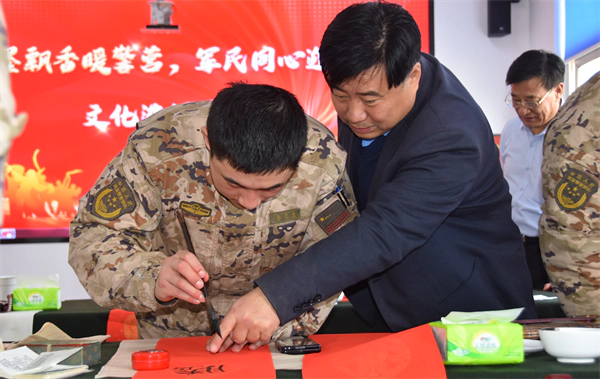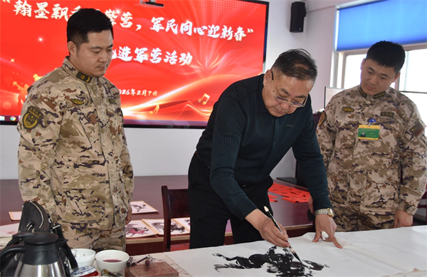 倒贴的福字,也成为我们迎接新春、表达心愿的重要方式。“军民团结如一人,试看天下谁能敌”。我们书画研究会将为部队官兵送上文化产品,让传统书画艺术在新时代绽放新光彩。让我们以今天为新的起点,牢记强军目标,用艺术讲好强军故事,为铸就中华文化新辉煌贡献全部热血!