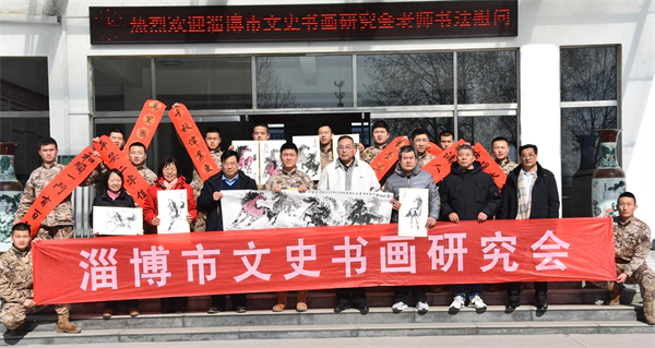 本网山东讯(特邀记者 齐升祥 通讯员 圣 元、肖 房)阳光普照,笔墨飘香。在这辞旧迎新的美好时节,淄博市文史书画研究会组织我市知名书画家,参加了一场别开生面的文化进军营活动,慰问节日坚守岗位的武警部队官兵。书画的墨香,不仅点缀了军营的营门墙壁,更深深融入了官兵们的心田,彰显了军民一家亲的真挚情谊。