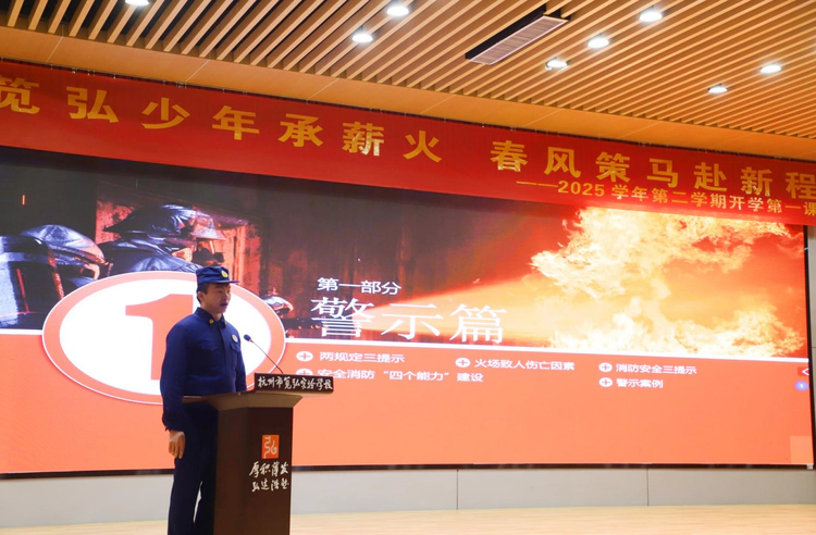 晨光熹微,暖意融融,未来剧场B内秩序井然,各班级教室中屏幕相连,全校师生以最饱满的姿态迎接典礼到来。伴着雄壮的国歌,五星红旗冉冉升起,嘹亮的歌声回荡在校园的每一个角落,爱国情怀在师生心中悄然升腾。开场节目《跟着课本去旅行》生动演绎,为典礼拉开美好序幕;学生代表字字铿锵,诉说着马年追梦的决心与向雷锋同志学习的初心;教师代表温情寄语,传递着育人的责任与对学子的期许。消防员叔叔的安全教育干货满满,为同学们的新学期安全保驾护航,声声叮嘱,皆是守护。