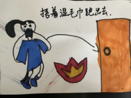 中大班宝贝:拿起画笔,描绘 “家里着火怎么办”,用童真画作呈现拨打 119、有序逃生、消防车救援等场景。