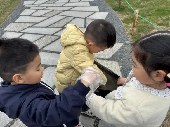 小班的宝贝们化身环保小卫士,在春游途中捡拾落叶、分类清理垃圾,开展趣味垃圾分类小游戏。孩子们认真分辨垃圾种类,亲手将垃圾投入对应垃圾桶,还把捡到的特色落叶小心收好,准备带回幼儿园继续开展自然探索活动,在轻松的互动中养成爱护环境、垃圾分类的好习惯,体会守护自然的快乐。