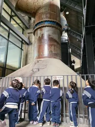 老师带着孩子们一同漫步公园,近距离了解杭钢的厚重历史,触摸斑驳的工业遗迹,感受老厂房、高炉、管道带来的独特工业氛围。