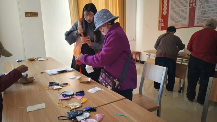 制作过程中,参与者们逐渐沉浸其中,有人仔细调整香包的松紧,有人反复嗅闻自己搭配的香气。社工不时走动观察,轻声鼓励,不催促、不评判,让每个人都能按照自己的节奏完成作品。