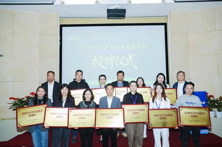 在全场嘉宾的共同见证下,“新时代中小学劳动教育共同体”成立发布仪式正式举行。由校长智库研究院与杭州濮家小学教育集团联合发起的“全国中小学劳动教育联盟校”同步揭牌,来自全国11个省份、覆盖不同学段的48所学校成为首批成员。联盟未来将搭建跨区域常态化教研合作与资源共享平台,为全国劳动教育落地提供可复制、可推广的实践样本。