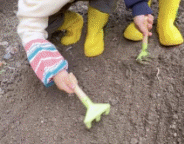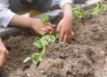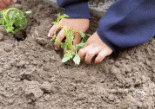 接着是挖垄沟,在老师的指导下,孩子们用小铁锹挖出浅浅的沟壑,嘴里还念念有词:“这样水就能流到每一棵番茄苗那里啦!”随后再小心翼翼地分苗、挖坑,将嫩绿的番茄秧苗轻轻放入坑中。